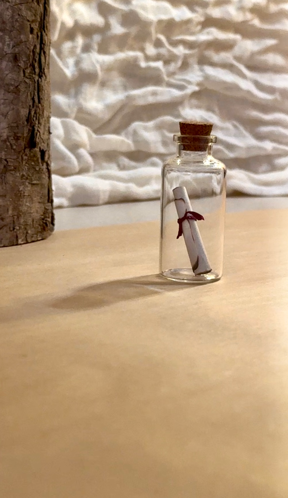 -A soft canvas pouch with dried florals, holding a glass message vial placed inside with your own words.